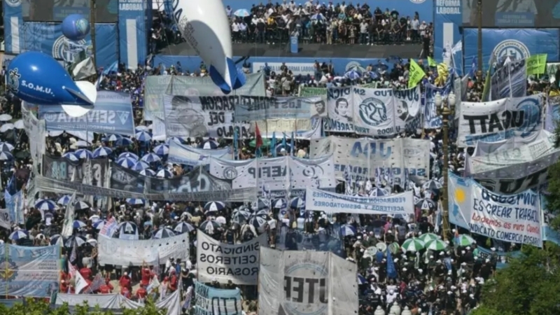 Milhares de argentinos se manifestaram nesta quinta-feira (18) nas ruas de Buenos Aires, na primeira grande mobilização contra as propostas de reforma trabalhista defendidas pelo presidente ultraliberal Javier Milei desde sua recente vitória nas eleições de meio de mandato.